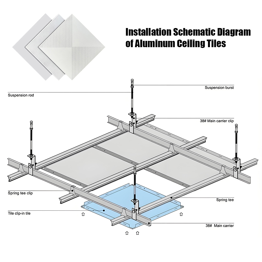 Another advantage of the 600×600 ceiling system is its installation and maintenance efficiency. The modular structure allows panels to be installed, removed, or replaced with ease, while also providing access to lighting fixtures, ventilation systems, and ceiling services above. For office building projects that require a balance of clean design, functional performance, and long-term usability, 600×600 metal ceiling panels offer a reliable solution.